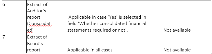- Are AOC-1, AOC-2, Extract of Board’s Report, Extract of Auditors Report [Standalone] and Extract of Auditors Report [Consolidated] applicable to AOC-4 XBRL?
