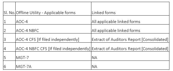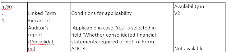 Note: Except Form No. ADT-4, all other new forms must be filed as linked filing to AOC-4/AOC- NBFC (Ind AS) /AOC-4 CFS/AOC-4 CFS NBFC (Ind AS) as per the applicability mentioned in the linked filing matrix FAQ.