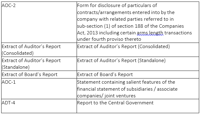 | 6 | AOC-2 | Form for disclosure of particulars of contracts/arrangements entered into by the company with related parties referred to in sub-section (1) of section 188 of the Companies Act, 2013 including certain arms length transactions under fourth proviso thereto | Linked |
