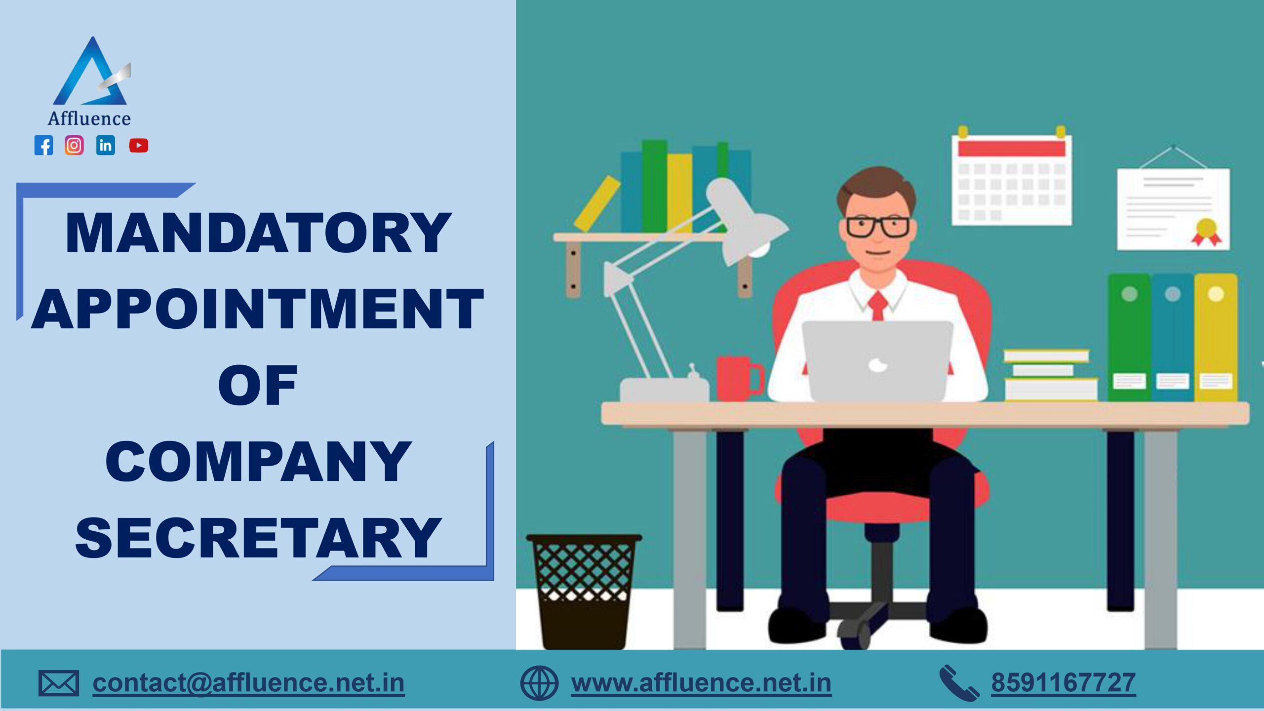 A Company Secretary (C.S.) of a company has the primary responsibility to ensure compliance with statutory and regulatory requirements and for ensuring that decisions of the board of directors are implemented. There are several laws, statutes, regulations, etc. applicable to the company, which a Company secretary looks after and comply thereon. In India, A company secretary needs to be a member of the Institute of Company Secretaries of India. Only then she/he is eligible to appointed as Company Secretary of any company.