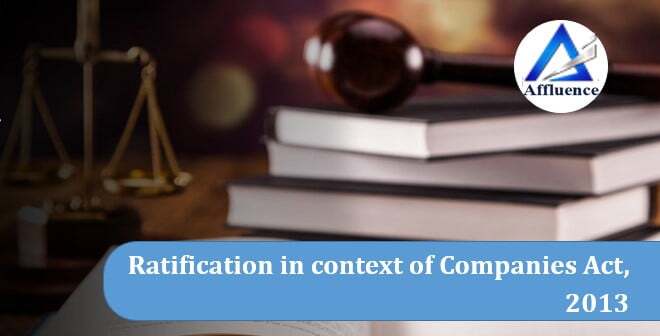 In the Context of Companies Act, 2013, Ratification is a procedure through which an irregularity in the running of the company is sanctioned by the shareholders and a director is absolved from his/her personal liability to the company arising from a breach of duty. However, shareholders can ratify only certain kinds of breaches; this means adopting, where a director lacked authority to transact on behalf of the company, or affirming, where a transaction entered into by a director was voidable. Certain breaches such as fraud committed by administrators, however, are non-ratifiable breaches. Ratification in order to be effective can only be by an authority that is in existence on the day the transaction was entered into and it should also be competent to ratify.
